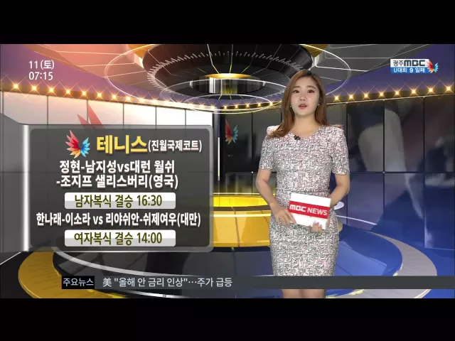 ◀앵 커▶ 다음은 주말의 경기 일정을 정지성 스포츠캐스터가 전해드립니다. //////////////////////////////////////////// (정지성) 광주유대회 종반을 달리고 있습니다. (vcr) 1) 내일은 리듬체조 요정 손연재 선수를 만나볼 수 있습니다. 내일 오후 두시부터 개인종합 예선이 시작됩니다. 손연재 선수는 후프와 볼 종목을...