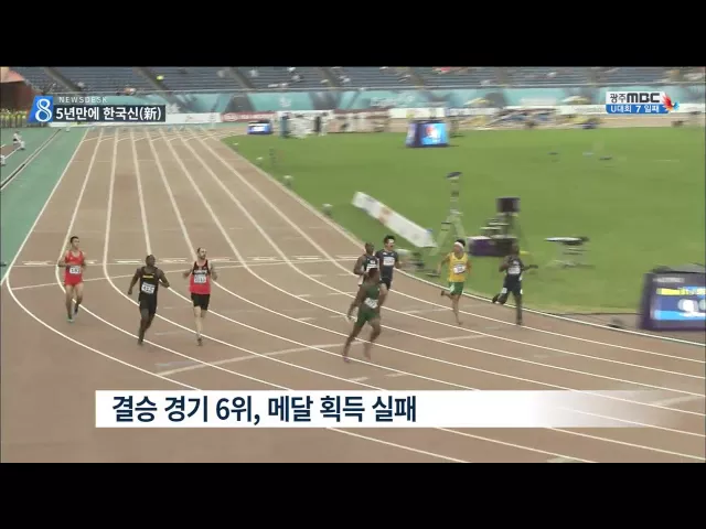 (앵커) 남자 100미터 달리기에서 한국 신기록이 나왔습니다. 김국영 선수가 5년만에 자신의 기록을 깼습니다. 보도에 조현성 기자입니다. (기자) (탕!) 간발의 차이로 결승선을 2위로 통과한 김국영 한국 신기록을 직감한 듯 기쁨의 함성을 지르고 연신 주먹을 불끈 쥐며, 상기된 표정을 감추지 못합니다. 10초 16, 5년 전,...