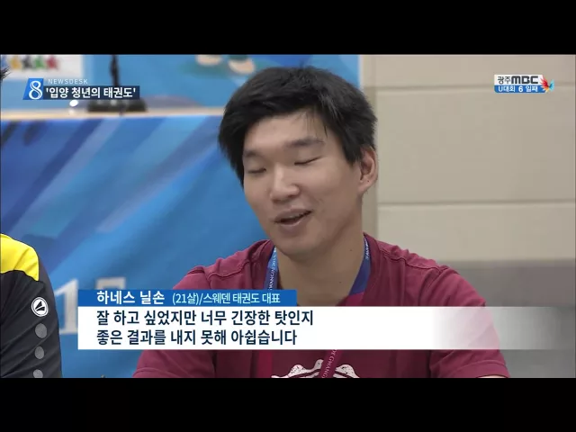 (앵커) 이번 대회 참가자 중에는 입양아 출신의 스웨덴 선수가 있습니다. 20년만에 엄마의 나라에 온 이 청년은 태권도 대표로 출전했습니다. 김철원 기자가 취재했습니다. (기자) 스웨덴 태권도 대표 하네스 닐손씨가 태극 7장 품새를 선보이고 있습니다. 1995년생으로 생후 석달만에 스웨덴 가정에 입양된 닐손씨는 올해 ...