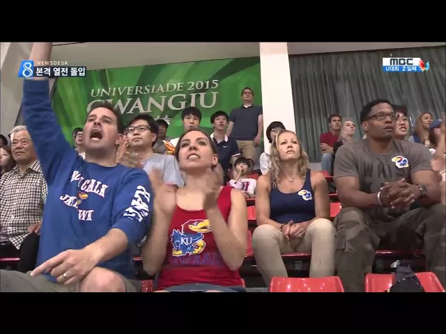 (앵커) 개막 이틀째, 각국 선수들이 본격적인 메달 경쟁이 시작됐습니다. 여자 다이빙에서 대회 첫 메달리스트가 나왔고 남자 농구를 비롯한 인기 종목들의 경기도 막이 올랐습니다. 조현성 기자 (기자) 림 위에서 꽂아넣는 호쾌한 덩크 슛, 탄성을 자아내는 현란한 드리블 좀처럼 보기 힘든 세계 최정상급 선수들의 플레이...