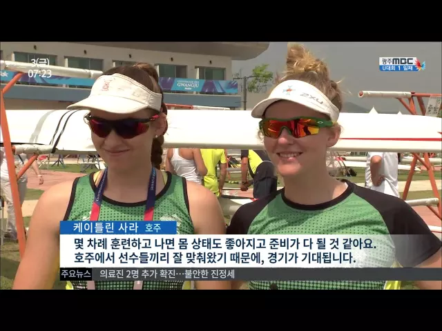 ◀ANC▶ 이번 U대회 21개 종목 가운데 조정 경기는 충북 충주에서 열립니다./ 미국의 미시간대와 일본의 와세다 대학 등 세계 명문대학 팀들간의 경쟁이 또 다른 볼거리입니다. 보도에 한승원 기자입니다.// ◀END▶ 잔잔했던 탄금호에 시원한 물살이 갈라집니다. 하나둘 노 젓는 호흡을 맞추는 선수부터, 에르고미터로 ...