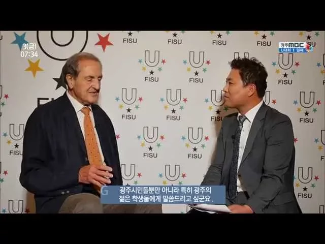 앵커) 국제대학스포츠 연맹 FISU의 수장인 끌로드 루이 갈리앙 회장은 광주 MBC와 인터뷰에서 북한이 참여 못한것은 아쉽지만 몇년뒤에는 반드시 남북 단일팀이 참여할것을 확신한다고 밝혔습니다. 갈리앙 회장을 김낙곤 취재부장이 만나봤습니다. 자막1) 끌로드 루이 갈리앙 회장 김낙곤 취재부장 -국제대학스포츠연맹- -...