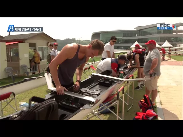 ◀앵 커▶ 이번 U대회 21개 종목 가운데 조정 경기는 충북 충주에서 열립니다./ 미국의 미시간대와 일본의 와세다 대학 등 세계 명문대학 팀들간의 경쟁이 또 다른 볼거리입니다. 보도에 한승원 기자입니다.// 잔잔했던 탄금호에 시원한 물살이 갈라집니다. 하나둘 노 젓는 호흡을 맞추는 선수부터, 에르고미터로 몸을 푸는 ...