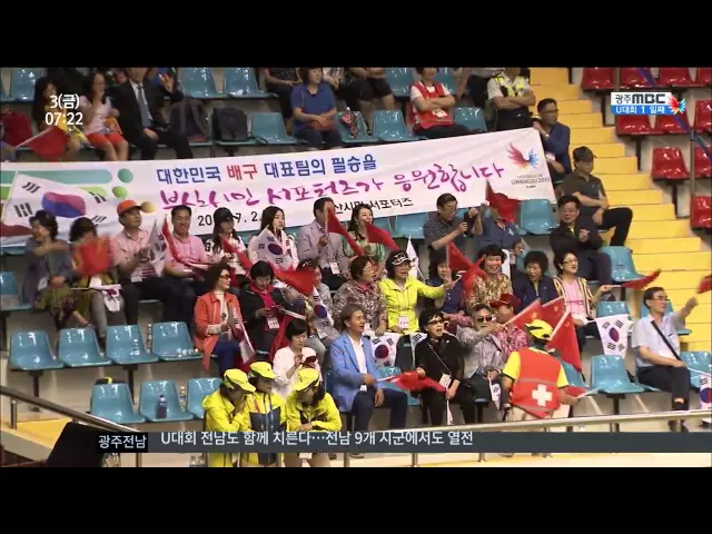 ◀ANC▶ 이번 대회의 이름은 광주 유니버시아드지만 실제로는 전남이 함께 치릅니다./ 7개 종목의 금메달은 전남에서 나옵니다. 문형철 기자입니다.// ◀VCR▶ 시원하게 내리꽂는 스파이크와, 과감한 서브 공격. 중국을 상대로 첫 예선 경기에 나선 한국 여자 배구대표팀이 그동안 갈고닦은 기량을 선보입니다. 관중들도 ...