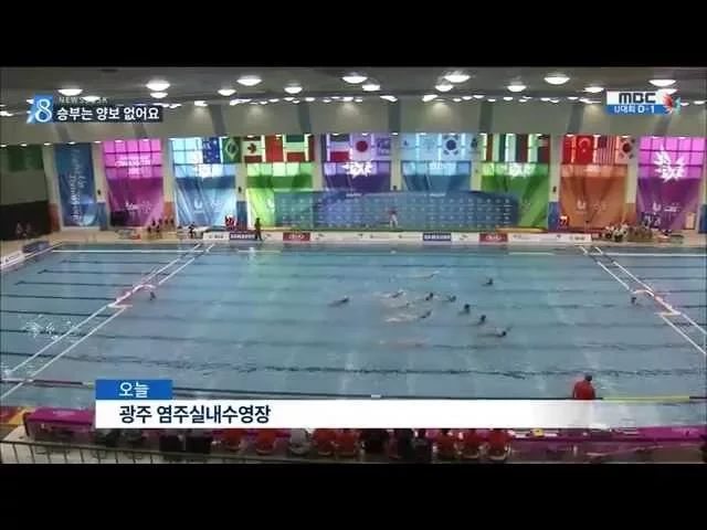 (앵커) 대회 개막은 오늘이지만 경기는 이미 시작됐습니다./ 어제 일부 단체 종목의 예선전이 열렸는데 시작부터 열기가 뜨거웠습니다. 조현성 기자입니다.// (기자) 2015 광주 유 대회 첫 공식 경기 일정은 수구 여자부 경기로 시작됐습니다. 첫 경기인 중국과 일본전에 이어 캐나다와 세르비아 선수들이 맞붙어 첫 날부터...