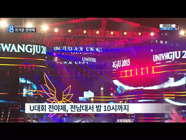 U대회 개막을 하루 앞두고 전야제 행사가 전남대에서 열립니다. 오늘(2)밤 8시 30분부터 10시까지 전남대 종합운동장에서 열릴 예정인 U대회 전야제에는 걸그룹 걸스데이와 소프라노 강혜정, 샤이니와 포미닛 등이 출연해 K-POP과 클래식공연을 선보입니다. 한편, 국제대학스포츠연맹(FISU)이 주관하는 FISU 갈라와 환영리...