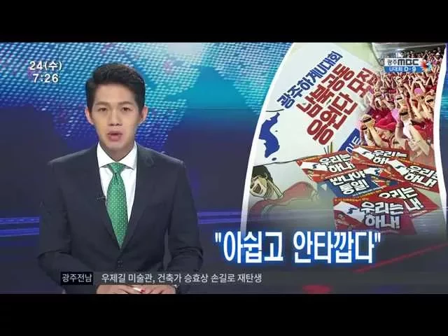 (앵커) 북한의 U대회 불참이 확실시되면서 많은 이들이 안타까워하고 있습니다. 특히 이번 U대회를 경색된 남북관계의 물꼬 삼으려 했던 이들의 실망이 큽니다. 김철원 기자입니다. (기자) 북한 응원단이 내려오면 함께 쓰려고 만들었던 카드섹션 응원도구입니다. 북한 응원단은 물론 선수단마저 오지 않기로 결론나면서 무...