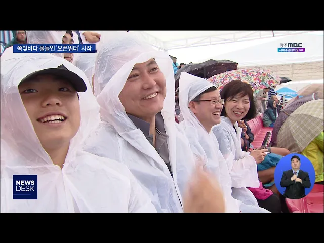 ◀ANC▶ (남)여러분 안녕하십니까? 드디어, 지구촌의 수영 축제가 개막했습니다. 경기는 이미 시작했고, 이 뉴스가 끝나면 곧바로 개회식이 진행됩니다. (여)세계영선수권대회 개막에 맞춰 오늘 뉴스데스크는 광주,목포,여수MBC 3사가 공동으로 전해드리겠습니다. (남)그럼 먼저, 개회식장으로 가보겠습니다. (여)광주여대...
