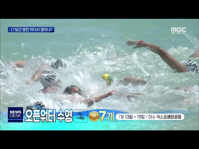 ◀ANC▶ 세계수영선수권대회의 열기가 여수에서도 이어지고 있습니다. 장거리 수영대회인 오픈워터가 엑스포 해양공원에서 열렸는데요. 선수들의 열띤 레이스 속에 관중들도 지구촌 축제를 즐겼습니다. 김종수 기자가 취재했습니다. ◀VCR▶ 이른 아침부터 각국 선수들과 임원들이 경기 준비에 분주합니다. 꼼꼼하게 바다...