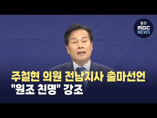 (앵커)여수갑 국회의원인 주철현 의원이 내년 전남도지사 선거 출마를 공식 선언했습니다.'원조 친명'임을 강조한 주 의원은 지역 갈등을 막기 위해 서부권의 대승적 결단이 필요하다고도 강조했습니다.문형철 기자입니다. (기자)지방선거를 여덟 달 앞두고 일찌감치 기자회견에 나선 주철현 의원은 전남의 인구 감소 문제 ...