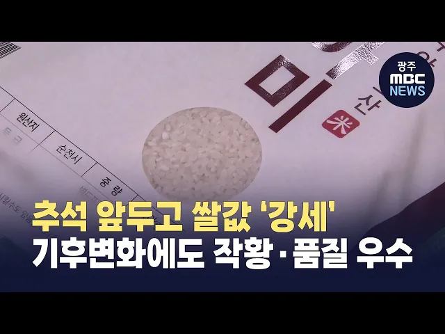 (앵커)추석을 앞두고 쌀값이 강세를 보이고 있습니다.지난해 작황 부진 등으로 여전히 시장에는 쌀이 부족한 건데, 햅쌀이 본격적으로 유통되는 다음 달이 지나야 가격이 안정될 전망입니다.유민호 기자입니다.(기자)논 가장자리를 지나는 콤바인.베어진 벼가 기계에 차곡차곡 실립니다.순천 들녘에서는 막바지 조생종 벼 ...