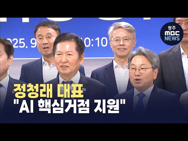 (앵커)광주를 찾은 정청래 더불어민주당 대표가 광주를 인공지능 핵심거점으로 지원하겠다고 약속했습니다.광주시는 현재 역점적으로 추진하고 있는 AI컴퓨팅센터 유치에 민주당이 앞장서 달라고 요청했습니다.송정근 기자입니다.(기자)광주시청 공무원들의 뜨거운 환영 속에 광주시를 찾은 정청래 더불어민주당 대표.내년...