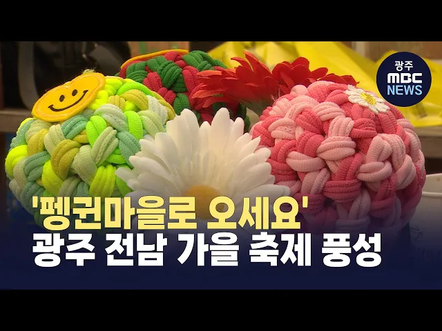 (앵커)아침 저녁으로 제법 선선한 바람이 부는 가을,광주,전남 곳곳에서는 다양한 축제가 펼쳐져 눈길을 끌고 있는데요.펭귄마을로 유명한 양림동에서는 플리마켓과 공예 체험, 공연이 어우러진 체험형 축제가 열렸습니다.한신구 기자의 보도입니다.(기자)낡은 천을 재활용해 아담한 방석도 만들어 보고 ..못 쓰는 양말로 ...