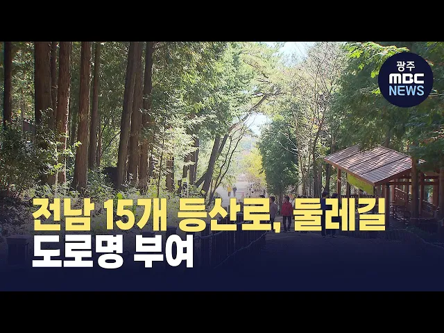 전남 15개 구간 등산로와 둘레길, 탐방로 등에도로명이 부여됐습니다.이번에 도로명이 부여된 곳은여수 고락산 둘레길, 담양 병풍산 숲길,고흥 팔영산 편백 치유의 숲길 등 15곳입니다.그동안 기존 숲길은지도나 내비게이션에 명확하게 표시되지 않아방문객들이 찾는 데 어려움을 겪었는데,이번 도로명 부여로 접근성이 개...