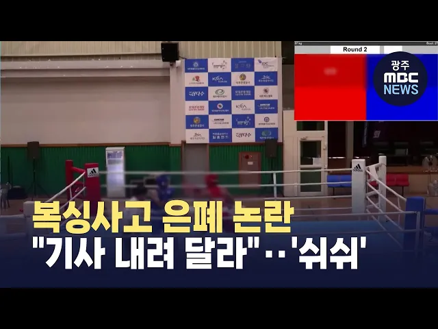 (앵커)최근 제주에서 열린 전국복싱대회에서 전라남도의 중학생 선수가 머리를 크게 다쳐 일주일째 의식불명 상태에 빠졌는데요.대한복싱협회와 관련자들이 사건을 숨기려고 부모와 목격자를 압박했다는 주장이 나오고 있습니다.제주문화방송 조인호 기자입니다.(기자)복싱경기를 하던 중 상대 선수의 펀치를 맞고 쓰러진 1...