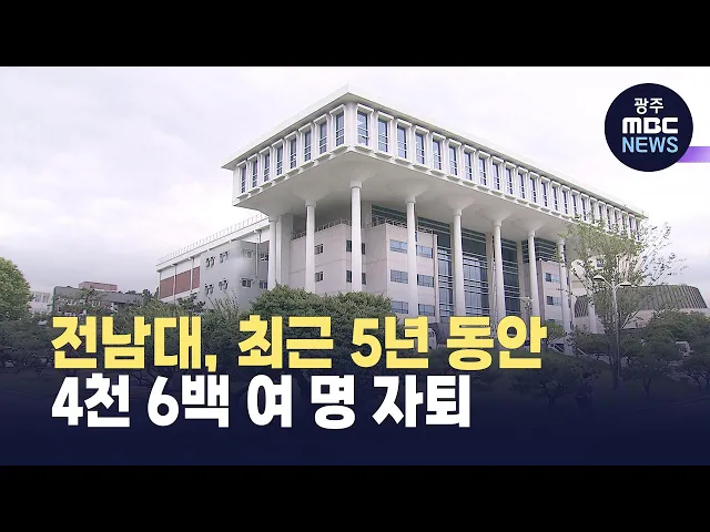 지역 거점 국립대학인 전남대학교에 입학한 뒤중도에 자퇴한 학생이지난 5년동안 4천 6백명이 넘는 것으로 나타났습니다.국회 교육위 조정훈 의원실에 따르면지난 2020년부터 올해까지전남대에 입학한뒤 자퇴한 학생은 4천681명으로한해 평균 9백 명이 넘었습니다.이는 전국 9개 거점 국립대 가운데경북대와 강원대에 이어 ...