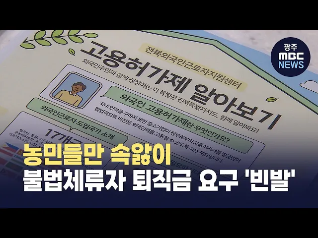 (앵커)불법체류 미등록 외국인을 고용했던 농가들이 뒤늦게 수백에서 많게는 수천만 원의 퇴직금 청구서를 받는 사례가 잇따르고 있습니다.편법인 줄 알지만 사정을 봐준 선의가 화근이 됐다는 게 농민들 주장인데 실제로 이를 이용하려는 브로커들까지 활개를 치면서 속앓이를 하는 경우가 많습니다.전주문화방송 이창익 ...