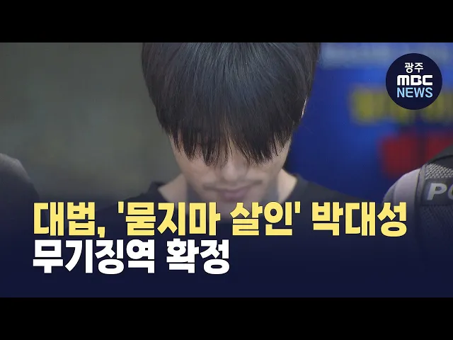 지난해 9월 순천에서 길 가던 10대 여성을 흉기로 살해한박대성에게 무기징역이 확정됐습니다.대법원 3부는 살인 및 살인예비 혐의로 기소된 박대성에게 무기징역을 선고한 원심 판결을 확정했습니다.박대성은 경제적 궁핍과 가족 간 불화 등 개인 분풀이로 이른바 '묻지마 살인'을 저지른 것으로 조사됐으며, 1, 2심 모두 ...