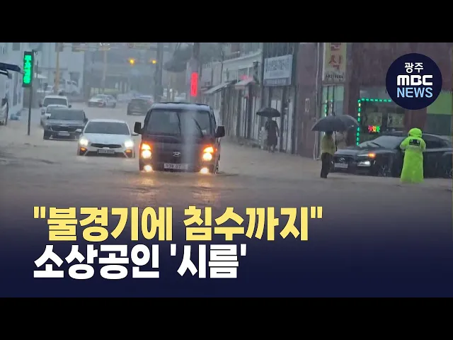 (앵커)지난 주말, 기습적인 폭우로 상가 곳곳이 잠겼던 여수 율촌지역에 긴급 복구 작업이 이뤄졌습니다.피해를 입은 점포가 모두 30여 곳에 달하는데요.불경기에 자연 재해까지 겹치면서 소상공인들의 시름이 깊습니다.문형철 기자입니다. (기자)노란 조끼를 입은 공무원들이 빗물에 젖은 물건들을 하나하나 밖으로 빼냅니...