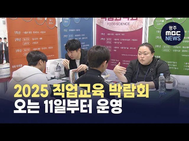 2025 광주 직업교육 박람회가오는 11일부터 12일까지광주여대 유니버시아드 체육관에서 열립니다.광주지역 13개 직업계 고교 등5천여 명의 중,고생과 교사 등이 참여하는이번 박람회에서는'먼저 만나는 꿈, 꿈을 이루는 열쇠'를 주제로직업교육 인식 개선과 학생 취업역량 강화를 위한 다채로운 프로그램이 마련됩니다.또 ...