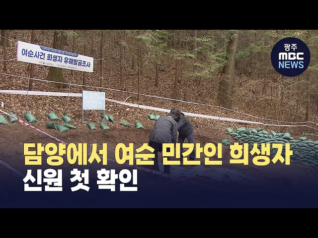 여순사건 당시 무고하게 희생된 민간인의 신원이 처음으로 확인됐습니다.여순사건 진상규명 위원회에 따르면 지난 2023년 11월부터 담양 옥천약수터에서 발굴된 유해 26구 가운데 2구의 유전자가 여순 사건 유가족 유전자와 일치한 것으로 확인됐습니다.옥천약수터는 지난 1950년 7월 구례에서 예비검속으로 끌려간 민간인...