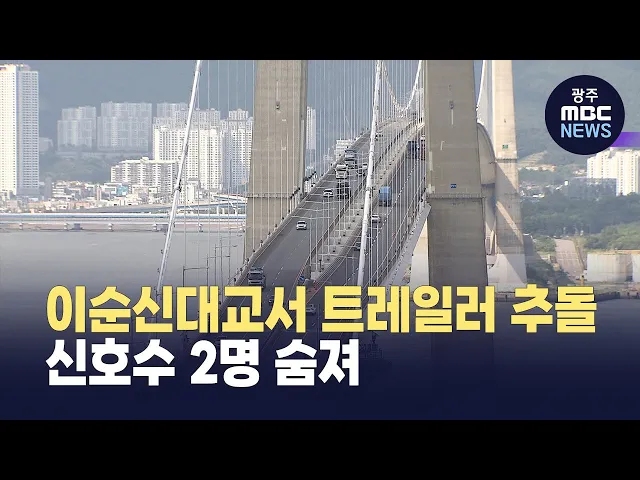 오늘(5) 오전 11시 50분쯤 여수에서 광양을 잇는 이순신대교에서 트레일러가 갓길에 정차된 공사 차량을 들이받았습니다.사고 충격으로 공사 차량이 밀려나신호수 역할을 하던 40대 노동자 2명이 치었고,병원으로 이송됐지만 숨졌습니다.경찰은 트레일러 운전자가공사 차량을 발견하지 못하고 사고를 낸 것으로 보고,운전자...