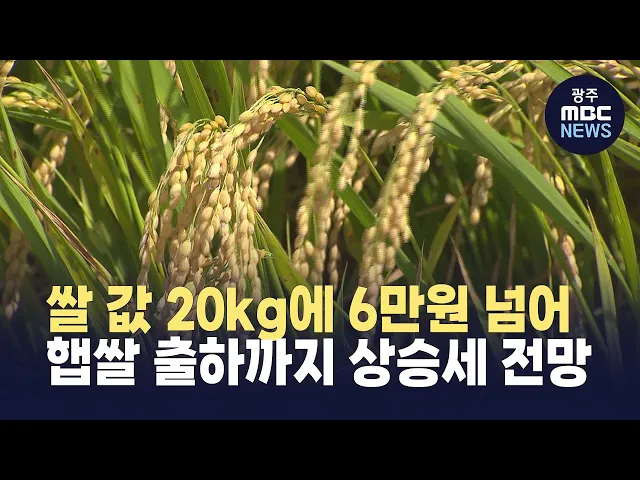 쌀값이 심리적 마지노선으로 여겨지는 20㎏당 6만 원을 넘어섰습니다.한국농수산식품유통공사에 따르면 그제(3일) 기준 쌀 20㎏ 소비자가격은 6만 316원으로 집계돼, 지난해 같은 시기보다 14%, 평년보다 12% 높았습니다.햅쌀이 본격적으로 수확되는 다음달까지 쌀값 상승세는 이어질 것으로 전망됩니다.한편 지난해 전국 ...