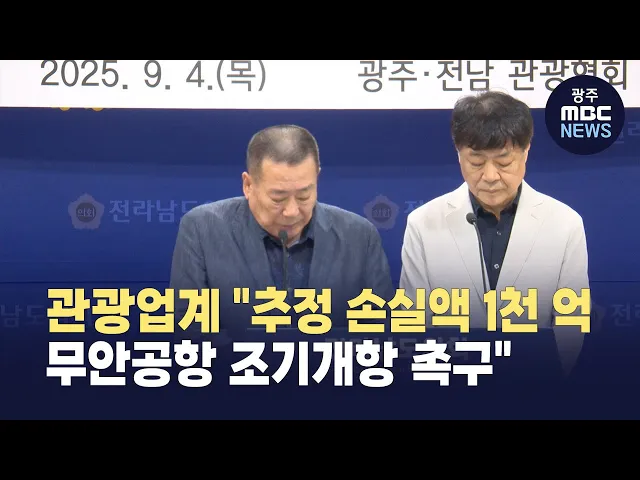 광주*전남 관광업계가 정부에무안국제공항 재개항에 대한 구체적이고 명확한 로드맵 제시를 촉구하고 나섰습니다.이들은 오늘(4) 전남도의회에서 기자회견을 열고 "무안공항의 장기 폐쇄는단순한 교통 불편이 아닌 생존이 달린 문제"라며 이같은 내용의조기개항 촉구 성명을 발표했습니다.특히 "유가족들의 상심을 헤아리며...