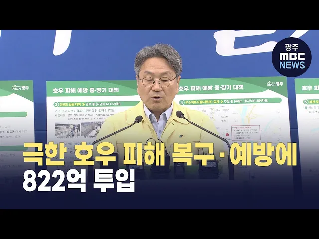 광주시가 지난 7월과 8월 극한 호우로피해를 본 주민들을 지원합니다.강기정 광주시장은 기자회견을 열고시와 자치구는 주택 상가 등의 피해지원과 공공시설 복구 지원 계획을 수립하고,민생 안정과 침수 예방을 위한복구 사업비 822억원을 긴급하게투입하겠다고 밝혔습니다.특히 피해를 본 주택 거주자에겐 9백만원을,소상...