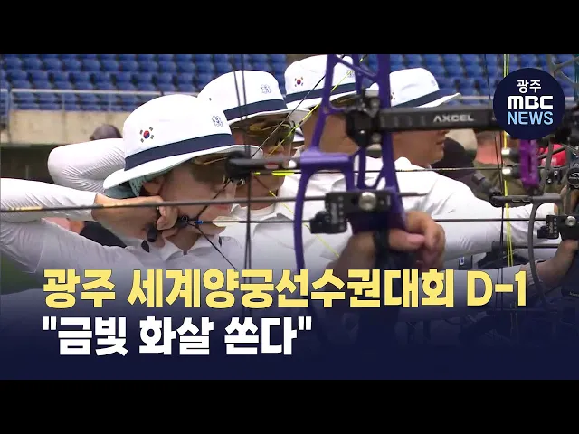 (앵커)광주 세계양궁선수권대회가 하루 앞으로 다가왔습니다.내일(5)부터 8일간 10개의 금메달을 향한 치열한 경쟁이 시작되는데요.결승전부터는 5.18 민주광장 특설 무대에서 열립니다.천홍희 기자가 보도합니다.(기자)광주 세계양궁선수권대회를 앞두고 선수들 연습이 한창입니다.팽팽하게 활시위를 당기고 과녁을 조준합...