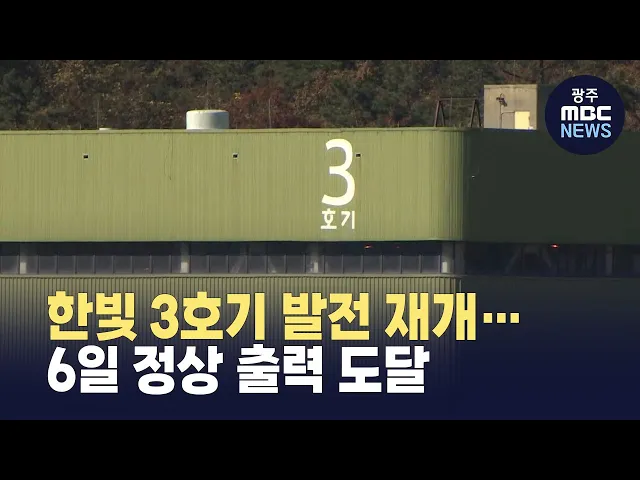 한빛 3호기 발전 재개…6일 정상 출력 도달