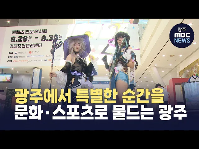 (앵커) 여름이 물러간다는 처서가 지나고 아침 저녁으로는 제법 선선한 바람이 부는 요즘, 광주는 다채로운 축제의 장이 되고 있습니다.아시아 최대 콘텐츠 전시회인 에이스 페어부터 디자인 비엔날레, 세계양궁선수권대회 등 광주가 문화와 스포츠로 어우러지고 있습니다.송정근 기자입니다.(기자)빨간 가발을 쓰고 사람 ...