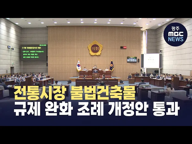 광주 전통시장의 건축물에 대한 규제가 한층 완화될 전망입니다.광주시의회 강수훈 의원이 대표 발의한 광주시 건축 조례 일부개정 조례안이 산업건설위원회 심사를 통과했습니다.이번 개정안은 92년 이전에 전통시장 안에 건축된 건축물로서 위반 면적이 50제곱미터 이하 등의 일정 요건을 충족할 경우 불법 용도 건축물에...