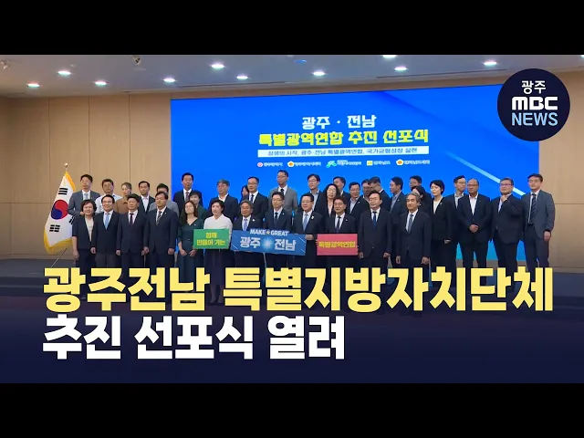 (앵커)광주시와 전남도가 '특별광역연합' 선포식을 열고 지역 소멸 위기를 함께 헤쳐나가기로 했습니다.이재명 정부의 5극 3특 국가균형성장 전략에 발맞춰 장기적으로 행정 통합으로까지 나아가겠다고 합의했는데요.수도권 쏠림 현상을 극복하는 대안이 될 수 있을지 관심이 집중됩니다.천홍희 기자가 보도합니다.(기자)광...