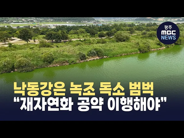 (앵커)여름철만 되면 영산강에 녹조가 창궐하죠.낙동강도 폭염이 이어지면 어김없이 녹조가 창궐하는데요.조류경보 경계 단계도 제대로 발령되지 않는데다 녹조가 심한 강물 옆에선 주민들이 맨발로 운동을 하고 있습니다.엠비씨 경남 이상훈 기자입니다. (기자)낙동강 중류의 김해 매리취수장.녹색 페인트를 뿌린 듯 강물...