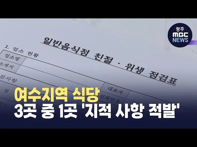 여수지역 식당에 대한 점검 결과 3곳 가운데 1곳 꼴로 지적 사항이 나왔습니다.여수시는 지난 11일부터 관내 3천 8백여 곳의 음식점을 대상으로위생 상태 등을 점검한 결과 34.5%에 해당하는 1천 3백여 곳이부적합 판정을 받았다고 밝혔습니다.내용별로는 위생복이나 모자, 마스크 미착용이 784곳으로 가장 많았고, 종사자 ...