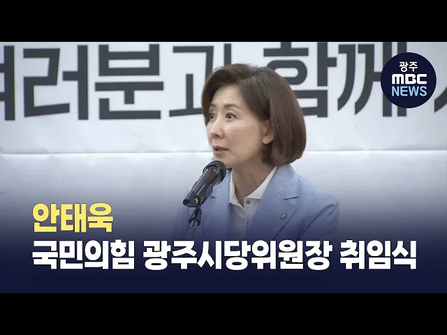 국민의힘 광주시당은 오늘(19)안태욱 신임 광주시당위원장이 공식 취임했다고 밝혔습니다. 취임식에는 나경원 의원과 당 관계자 등 100여 명이 참석했습니다. 안 위원장은 "어려운 시기에 당세 확장과 지지율을 올리는 데 힘쓰겠다"고 밝혔습니다.