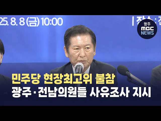 더불어민주당 정청래 대표가 새 지도부 구성 이후 전남도당에서 열린 첫 현장 최고위원회에 불참한 광주·전남의원들에 대해 사유조사를 지시했습니다.정 대표는 오늘 최고위원회 모두 발언에 앞서,"광주전남 소속 국회의원들은 다 어디 갔느냐" "안오신 분들은 왜 안 안오셨죠"라며 사무총장에서 불참 사유를 조사해 보고하...