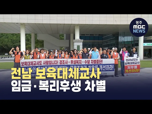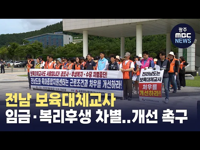 전남 지역 보육대체교사들이 임금과 각종 수당 등 근로조건 개선을 촉구하고 있습니다.공공연대노조 보육대체교사지부는오늘(8) 전남도청 앞에서 기자회견을 열고 전남에서 60여 명의 보육대체교사가보육교사의 병가, 연차, 교육 등으로 발생하는공백을 메우기 위해 여러 시군을 오가면서 일하고 있지만, 최저임금 수준의 ...