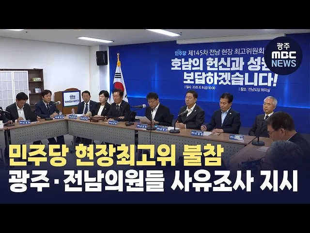 더불어민주당 정청래 대표가 새 지도부 구성 이후 전남도당에서 열린 첫 현장 최고위원회에 불참한 광주·전남의원들에 대해 사유조사를 지시했습니다.정 대표는 오늘 최고위원회 모두 발언에 앞서,"광주전남 소속 국회의원들은 다 어디 갔느냐" "안오신 분들은 왜 안 안오셨죠"라며 사무총장에서 불참 사유를 조사해보고하...