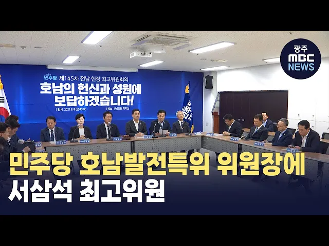 서삼석 최고위원이호남발전특위 위원장에 임명됐습니다.정청래 대표는무안에서 현장최고위원회를 열고서 최고위원을 호남발전특위위원장에 임명한다고 밝혔습니다.호남발전특위는 10명 안팎 규모로구성될 예정이며,호남 지역의 발전 요구와 비전이실제 정책으로 제도화될 수 있도록견인하는 기능을 맡습니다.