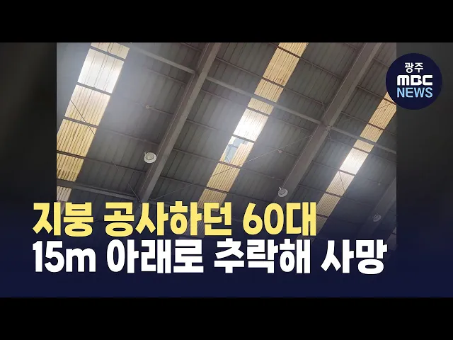 오늘(7) 오전 11시쯤영암군 삼호읍의 한 선박 기자재 제조 공장에서지붕 보수 공사를 하던 60대 일용직 노동자가15m 아래로 추락해 숨졌습니다.경찰과 노동 당국은 해당 노동자가 안전모만 착용한 채 추락 방지 장치 없이 작업하다가 지붕 채광창이 부서지면서 사고를 당한 것으로 보고 공장 측 사업주를 상대로 안전보건조...