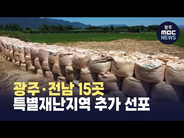 정부가 광주와 전남 15곳을특별재난지역으로 추가 선포했습니다.광주에서는광주 북구 전지역과 광산구 어룡동, 삼도동 등 3곳이특별재난지역으로 지정됐습니다.전남에서는나주시와 함평군 전지역이특별재난지역으로 선포됐으며,구례군 간전면과 토지면,화순군 이서면 등 10곳이읍면동 단위로 선정됐습니다.특별재난지역으로...