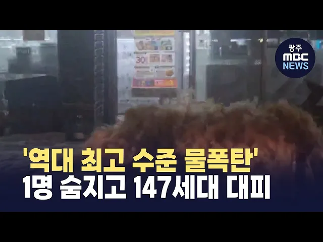 (앵커)지난밤 무안에서는 역대 최고 수준의 물폭탄이 쏟아졌습니다.시간당 142.1밀리미터의 비가 쏟아진 건데요.1명이 숨지고 주택과 도로 등 곳곳이 물에 잠겼습니다.김규희 기자가 보도합니다.(기자)아파트 지하주차장 진입로를 따라 누런 흙탕물이 쉴 새 없이 쏟아져 내립니다.급류처럼 흘러든 물은 20분 만에 바퀴까지 ...
