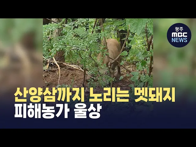 (앵커)사실상 최상위 포식자로 불리는 야생 멧돼지들이 농작물 뿐 아니라 산양삼까지 먹어치우는 걸로 파악되고 있습니다.농장주들은 수억대 피해에 비해 보상은 턱없이 부족하다고 망연자실하고 있습니다.원주문화방송 황구선 기잡니다.(기자)멧돼지 한 마리가 산 속에서 무언가 씹어먹다 갑자기 끌려갑니다.올무에 걸린 ...