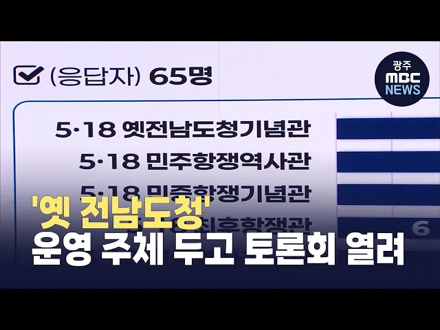 복원사업이 추진중인 옛 전남도청에 대한 운영 주체를 결정하기 위한 토론회가 어제(29) 열렸습니다.이번 토론회에서는 옛 전남도청 운영 주체를 ACC로 할 것인지, 또는 ACC와 분리해 독립기관으로 운영할 것인지를 두고 각각의 주장이 제기됐습니다.이에 대해 ACC와 문화체육관광부, 광주시는 운영 주체를 두고 시민의 결...