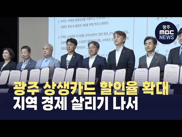 광주시가 광주 상생카드 할인율을 대폭 확대하는 등 지역 경제 살리기에 나섰습니다.광주시는 오늘(23)김대중컨벤션센터에서정책 보고회를 열고 지역 경제를 회복시키는 데 6천 200억 원을 투입한다고 밝혔습니다.광주 상생카드 할인율은 기존 7%에서 13%로 확대되고, 온누리상품권 소비액 5% 환급공공배달앱 활인쿠폰 발행...
