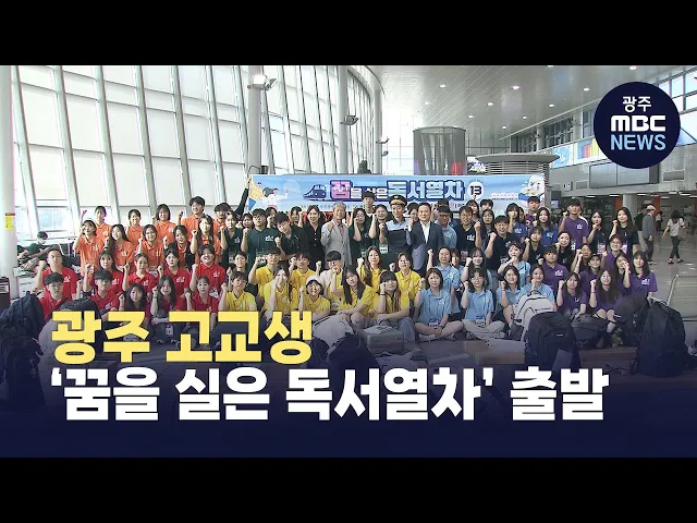 광주시교육청의 대표적인 청소년 독서토론 문화 프로그램,'꿈을 실은 독서열차' 출정식이 어제(23) 광주송정역에서 열렸습니다.광주지역 34개 고등학교 1학년생 70명은 2박 3일동안 파주출판단지와 임진각 등에서 독서토론을 비롯해 북콘서트, 출판도시 투어 등다양한 독서 활동을 펼칠 예정입니다.학생들의 독서력 향상과 ...