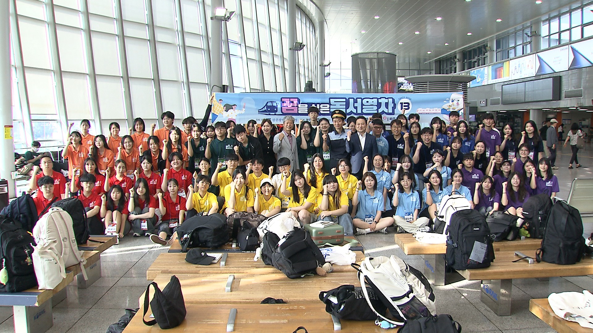 광주시교육청의 대표적인 청소년 독서토론 문화 프로그램,'꿈을 실은 독서열차' 출정식이 오늘(23) 광주송정역에서 열렸습니다.광주지역 34개 고등학교 1학년생 70명은 2박 3일동안 파주출판단지와 임진각 등에서 독서토론을 비롯해 북콘서트, 출판도시 투어 등다양한 독서 활동을 펼칠 예정입니다.학생들의 독서력 향상과 ...