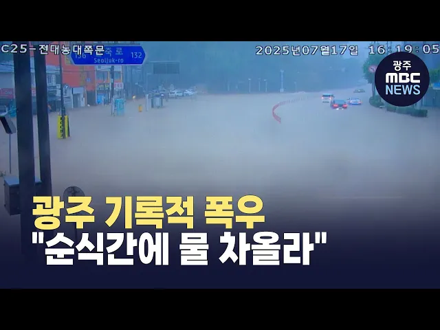 (앵커) 광주에서는 어제(17일) 하루 기록적인 폭우가 쏟아졌습니다.CCTV 영상 등을 통해 확인해보니 불과 십여 분만에 물이 불어났는데요삽시간에 물이 도로를 넘어 가게와 주택 등 내부까지 밀려들어와 큰 피해를 남겼습니다.긴박했던 당시의 상황을 김초롱 기자가 취재했습니다.(기자)광주 전남대학교 앞 도로 CCTV입니다...